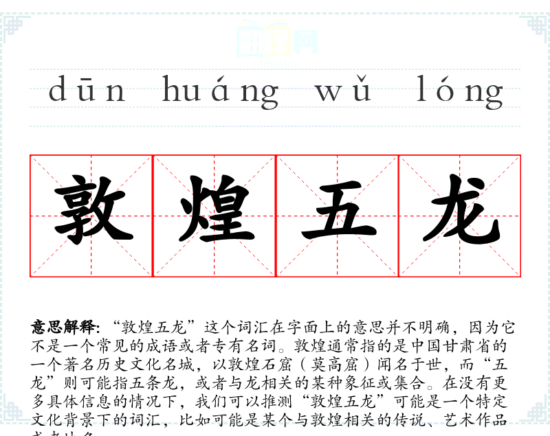 - 同义词:敦煌石窟、敦煌文化、五龙图(如果指的是一种图案或艺术作品)