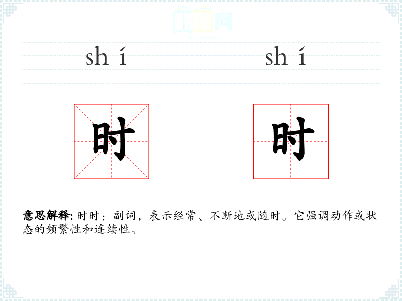 时时:副词,表示经常、不断地或随时。它强调动作或状态的频繁性和连续性。