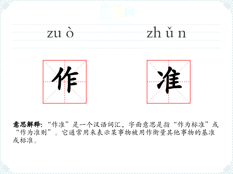 “作准”是一个汉语词汇,字面意思是指“作为标准”或“作为准则”。它通常用来表示某事物被用作衡量其他事物的基准或标准。