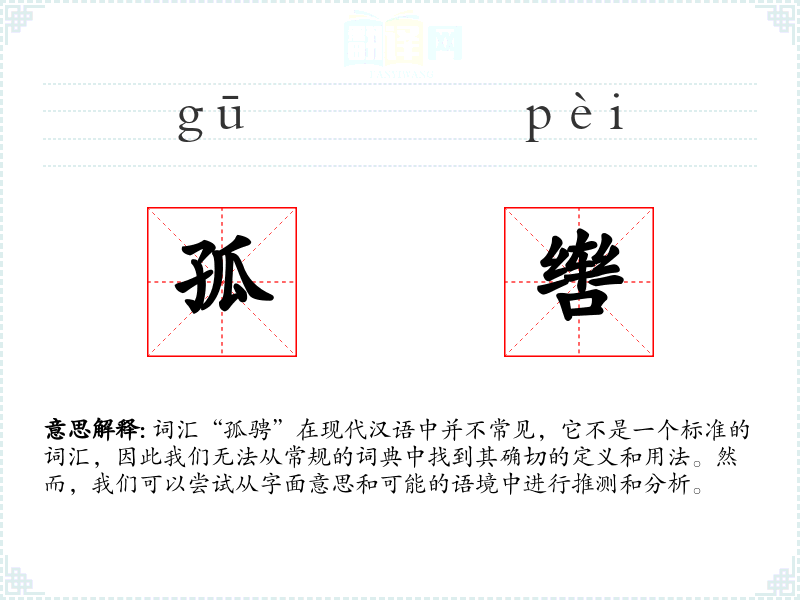 词汇“孤骋”在现代汉语中并不常见,它不是一个标准的词汇,因此我们无法从常规的词典中找到其确切的定义和用法。然而,我们可以尝试从字面意思和可能的语境中进行推测和分析。