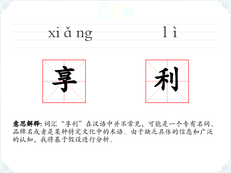 词汇“享利”在汉语中并不常见,可能是一个专有名词、品牌名或者是某种特定文化中的术语。由于缺乏具体的信息和广泛的认知,我将基于假设进行分析。