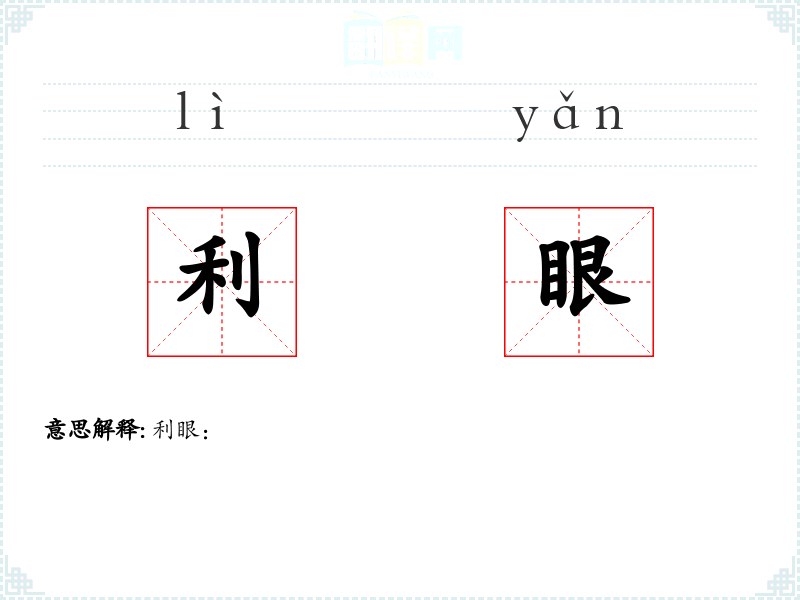 - 词源:“利眼”一词源于汉语,由“利”和“眼”两个字组成,“利”表示锐利、敏锐,“眼”表示眼睛。