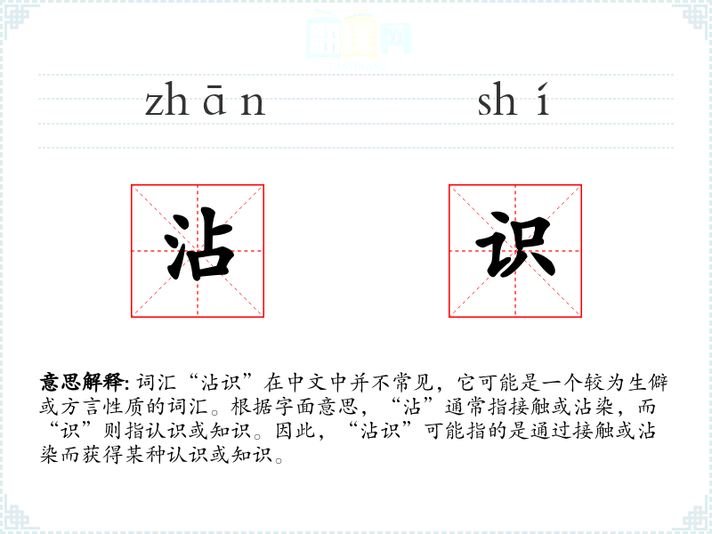 "沾识"的意思解释、沾识是什么意思由翻译网汉语词典查词提供。
