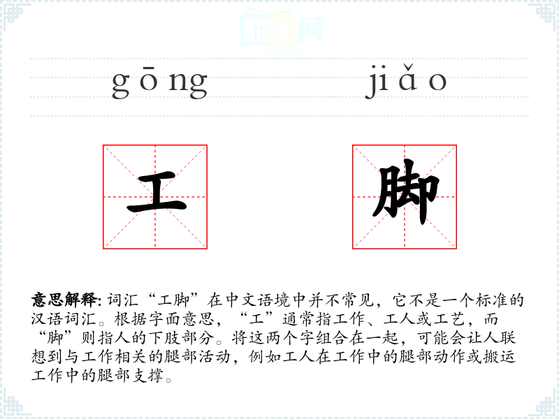 由于“工脚”不是一个国际通用的词汇,不同语言或文化中可能没有直接对应的词汇。