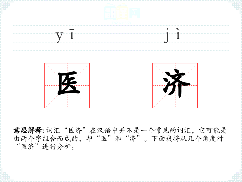 词汇“医济”在汉语中并不是一个常见的词汇,它可能是由两个字组合而成的,即“医”和“济”。下面我将从几个角度对“医济”进行分析: