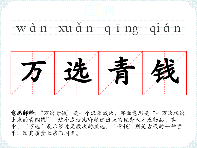 - wàn xuǎn qīng qián万选青钱