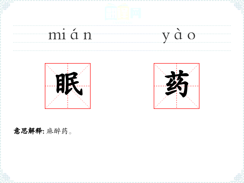 眠药的分字解释