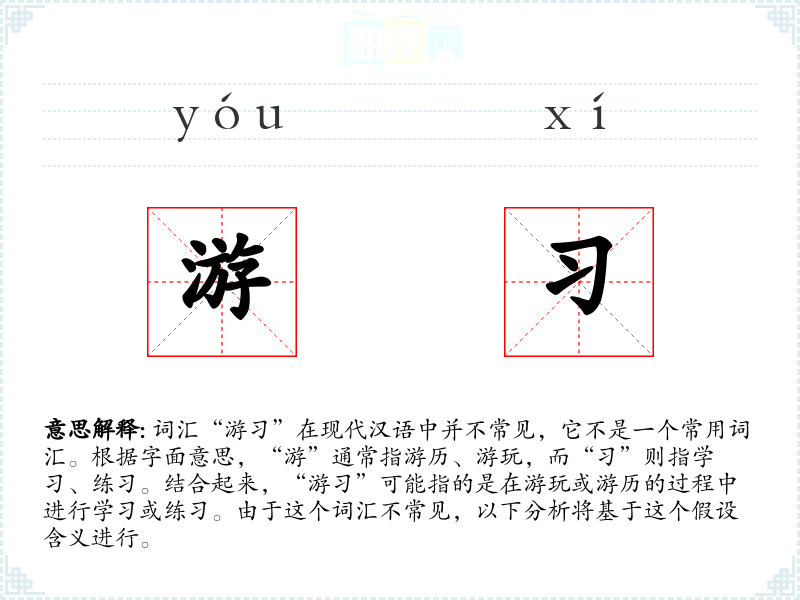 "游习"的意思解释、游习是什么意思由翻译网汉语词典查词提供。