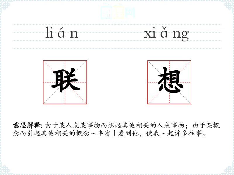 由于某人或某事物而想起其他相关的人或事物;由于某概念而引起其他相关的概念~丰富ㄧ看到他,使我~起许多往事。