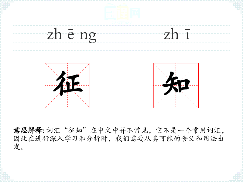 词汇“征知”在中文中并不常见,它不是一个常用词汇,因此在进行深入学习和分析时,我们需要从其可能的含义和用法出发。