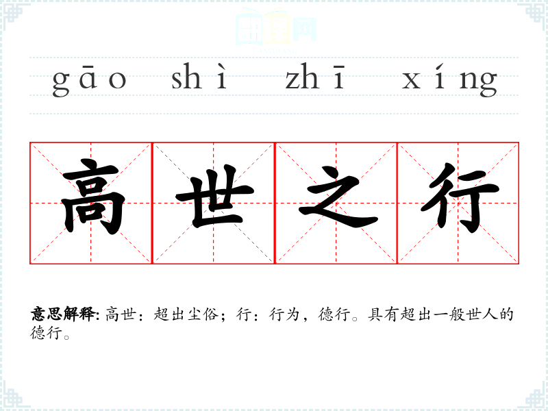高世:超出尘俗;行:行为,德行。具有超出一般世人的德行。