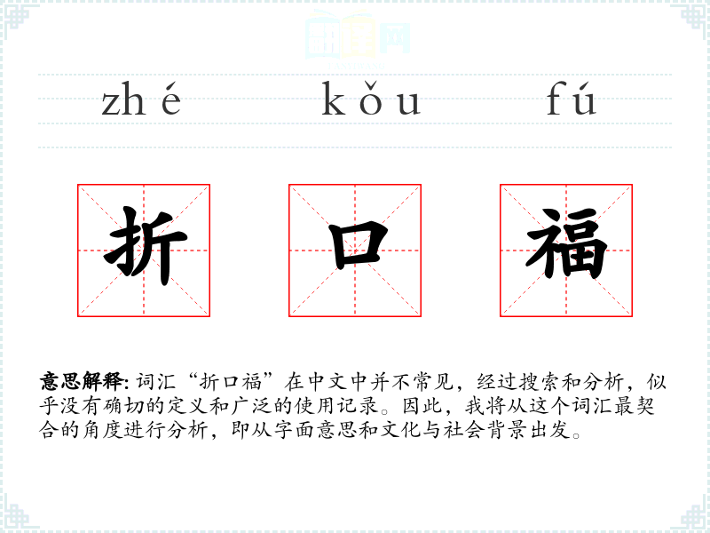 词汇“折口福”在中文中并不常见,经过搜索和分析,似乎没有确切的定义和广泛的使用记录。因此,我将从这个词汇最契合的角度进行分析,即从字面意思和文化与社会背景出发。