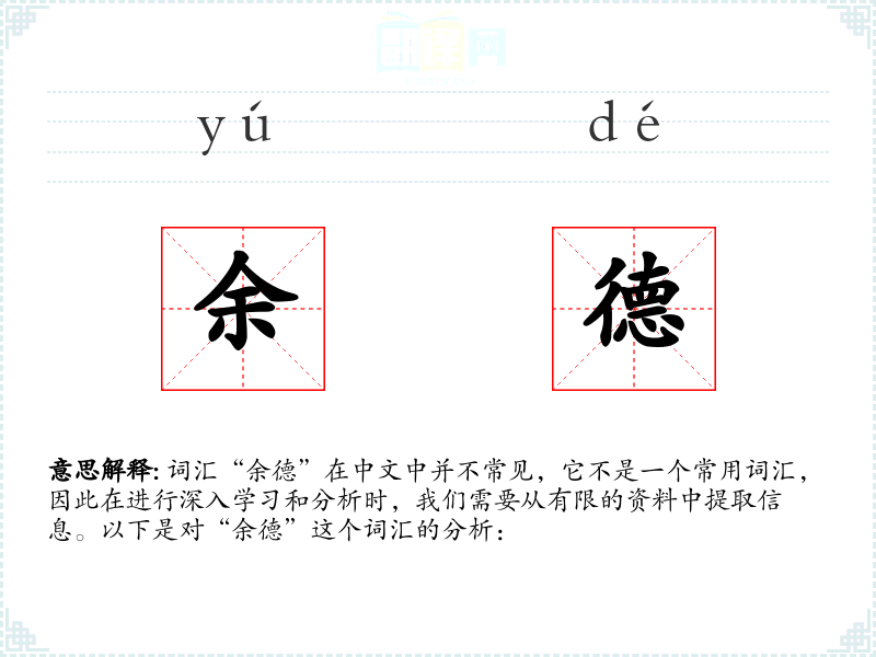由于“余德”不是一个常用词汇,个人在生活中可能很少有机会直接使用或遇到这个词汇。