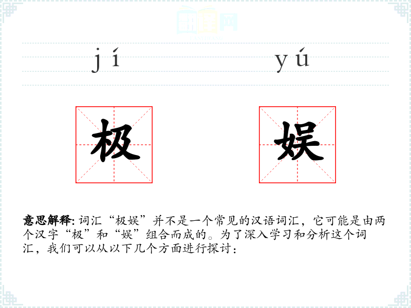 词汇“极娱”并不是一个常见的汉语词汇,它可能是由两个汉字“极”和“娱”组合而成的。为了深入学习和分析这个词汇,我们可以从以下几个方面进行探讨: