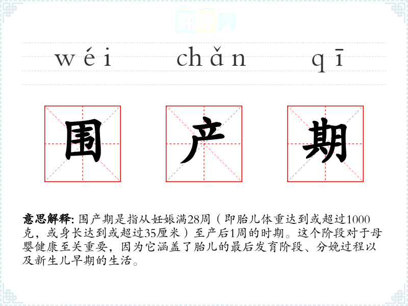 “围产期”一词源自医学术语,结合了“围”(围绕)和“产”(生产)的概念。随着医学的发展,这个词汇的定义和应用也在不断演变,特别是在围产医学和新生儿护理领域。