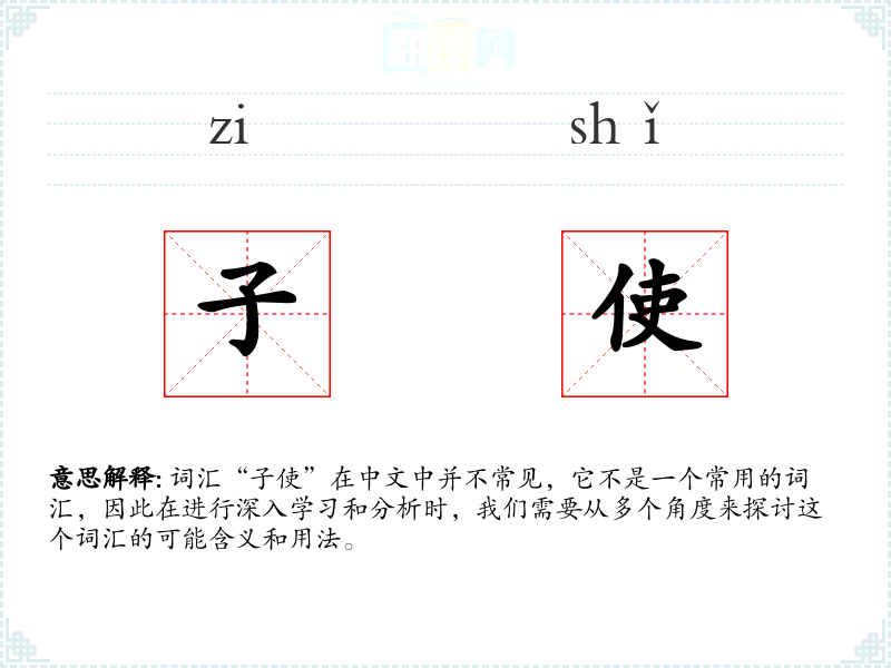 词汇“子使”在中文中并不常见,它不是一个常用的词汇,因此在进行深入学*和分析时,我们需要从多个角度来探讨这个词汇的可能含义和用法。