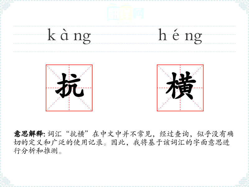 词汇“抗横”在中文中并不常见,经过查询,似乎没有确切的定义和广泛的使用记录。因此,我将基于该词汇的字面意思进行分析和推测。