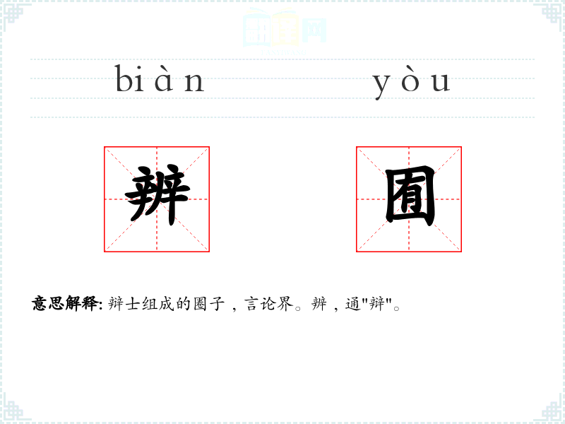 辩士组成的圈子﹐言论界。辨﹐通"辩"。