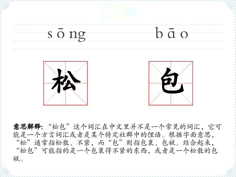 "松包"的意思解释、松包是什么意思由翻译网汉语词典查词提供。