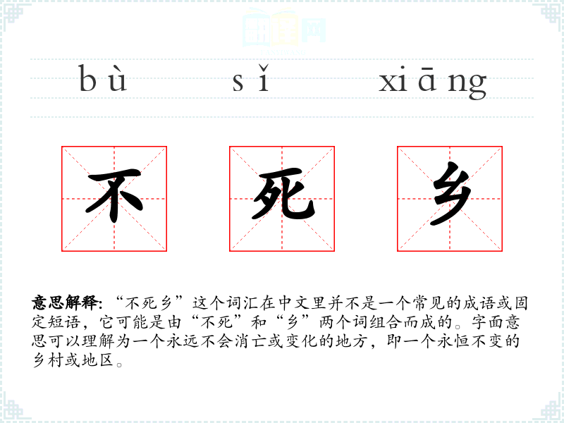 由于“不死乡”不是一个标准词汇,它的词源和演变不太明确。它可能是由现代作家或诗人创造的,用以表达特定的文学或哲学概念。