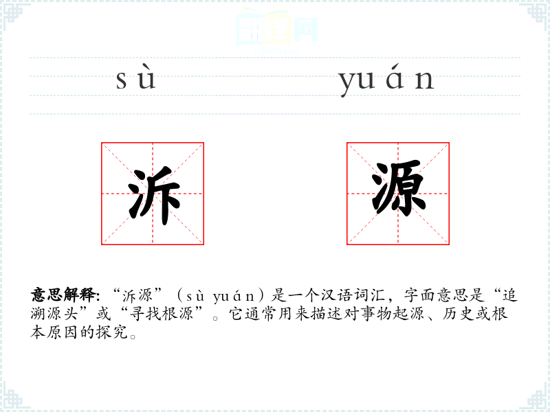 “泝源”(sù yuán)是一个汉语词汇,字面意思是“追溯源头”或“寻找根源”。它通常用来描述对事物起源、历史或根本原因的探究。