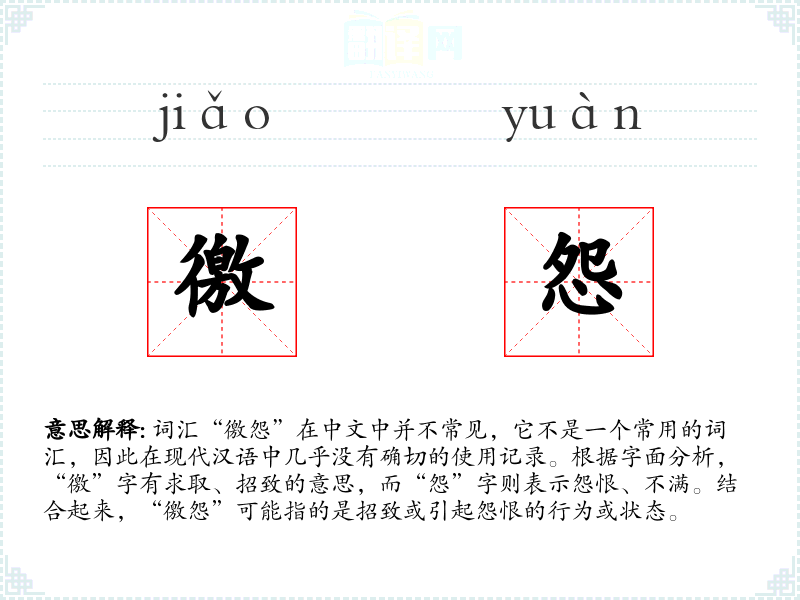 "徼怨"的意思解释、徼怨是什么意思由翻译网汉语词典查词提供。