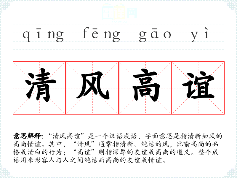 “清风高谊”这个成语的词源较为模糊,但它体现了中华文化中对纯洁和高尚品质的追求。在古代文学作品中,类似的表达常常用来赞美君子的高尚品格和纯洁的友谊。