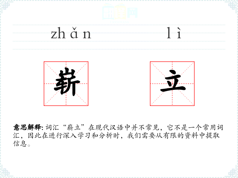 词汇“崭立”在现代汉语中并不常见,它不是一个常用词汇,因此在进行深入学习和分析时,我们需要从有限的资料中提取信息。