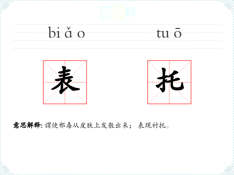 谓使邪毒从皮肤上发散出来; 表现衬托。