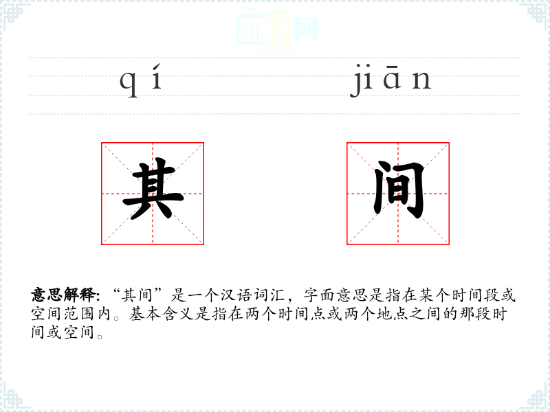 - 口语:在日常对话中,“其间”可以用来指代某个**发生的时间段,如“我在旅行的其间,遇到了很多有趣的人。”