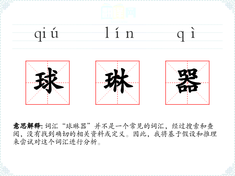 词汇“球琳器”并不是一个常见的词汇,经过搜索和查阅,没有找到确切的相关资料或定义。因此,我将基于假设和推理来尝试对这个词汇进行分析。
