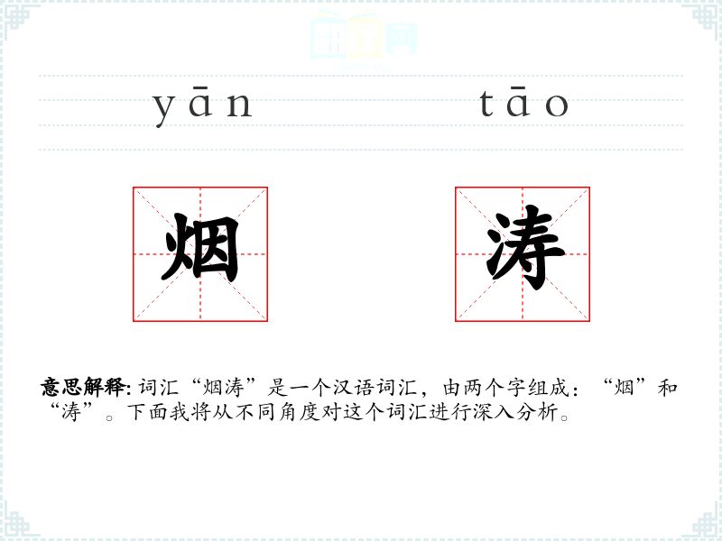词汇“烟涛”是一个汉语词汇,由两个字组成:“烟”和“涛”。下面我将从不同角度对这个词汇进行深入分析。