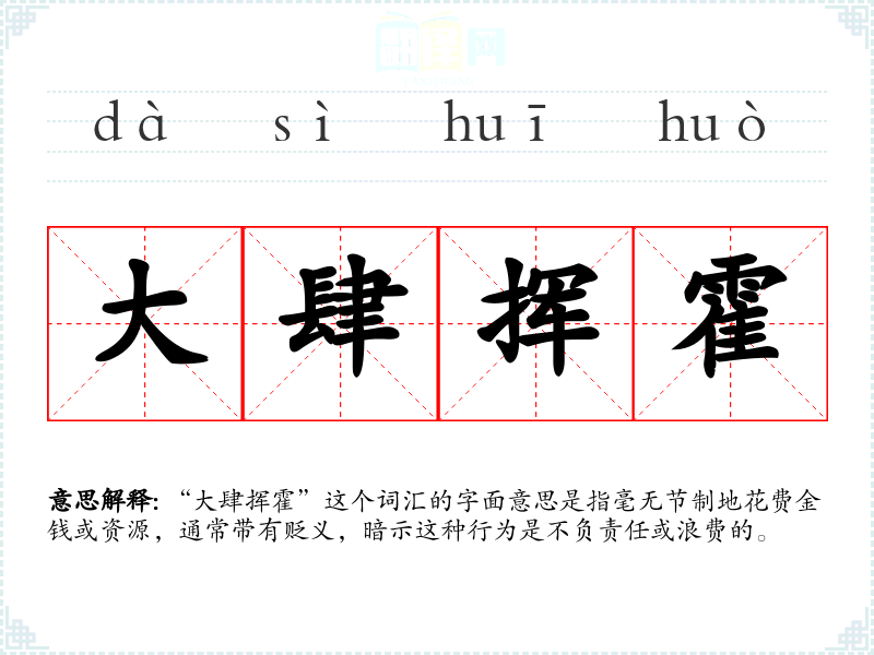 “大肆挥霍”这个词汇的字面意思是指毫无节制地花费金钱或资源,通常带有贬义,暗示这种行为是不负责任或浪费的。