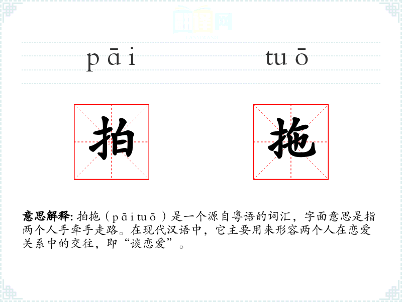 "拍拖"的意思解释、拍拖是什么意思由翻译网汉语词典查词提供。