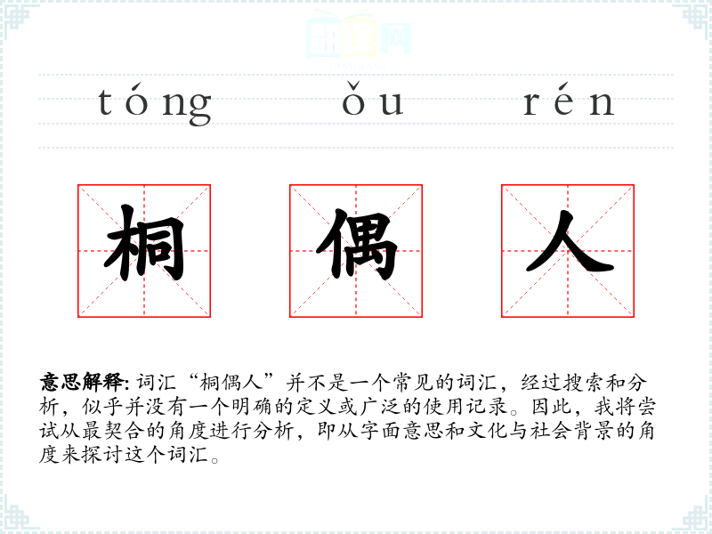 词汇“桐偶人”并不是一个常见的词汇,经过搜索和分析,似乎并没有一个明确的定义或广泛的使用记录。因此,我将尝试从最契合的角度进行分析,即从字面意思和文化与社会背景的角度来探讨这个词汇。