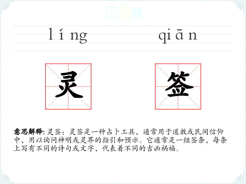 - 反义词:无,因为灵签本身是一种占卜工具,没有直接的反义词。