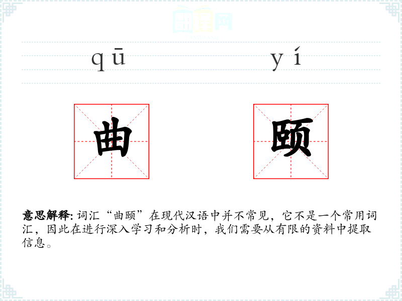 词汇“曲颐”在现代汉语中并不常见,它不是一个常用词汇,因此在进行深入学*和分析时,我们需要从有限的资料中提取信息。