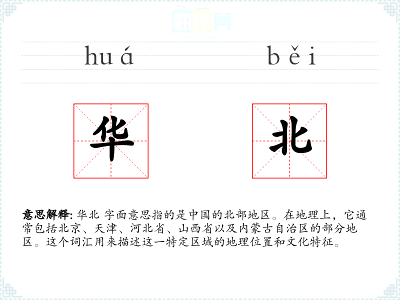 在其他语言中,如英语,可能会用“North China”来直接翻译“华北”,但其文化和历史内涵可能需要更深入的解释。