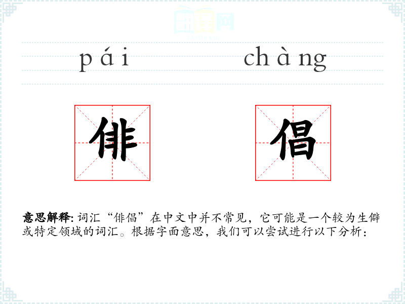 词汇“俳倡”在中文中并不常见,它可能是一个较为生僻或特定领域的词汇。根据字面意思,我们可以尝试进行以下分析: