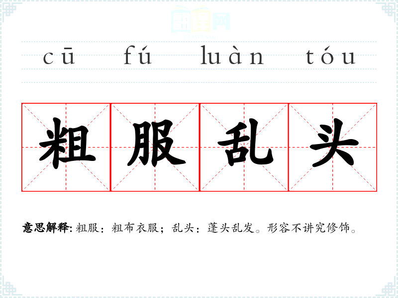 粗服:粗布衣服;乱头:蓬头乱发。形容不讲究修饰。