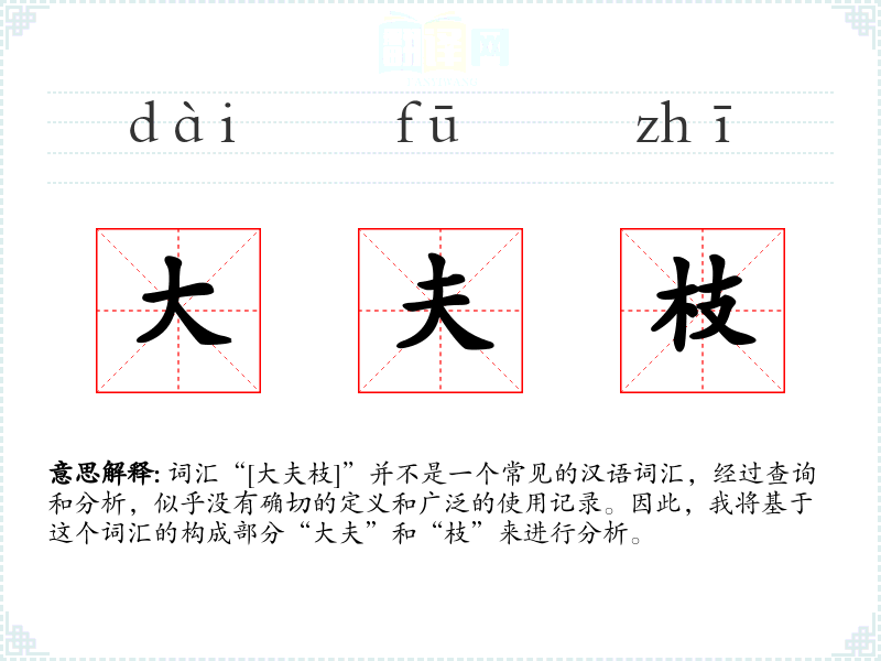 词汇“[大夫枝]”并不是一个常见的汉语词汇,经过查询和分析,似乎没有确切的定义和广泛的使用记录。因此,我将基于这个词汇的构成部分“大夫”和“枝”来进行分析。