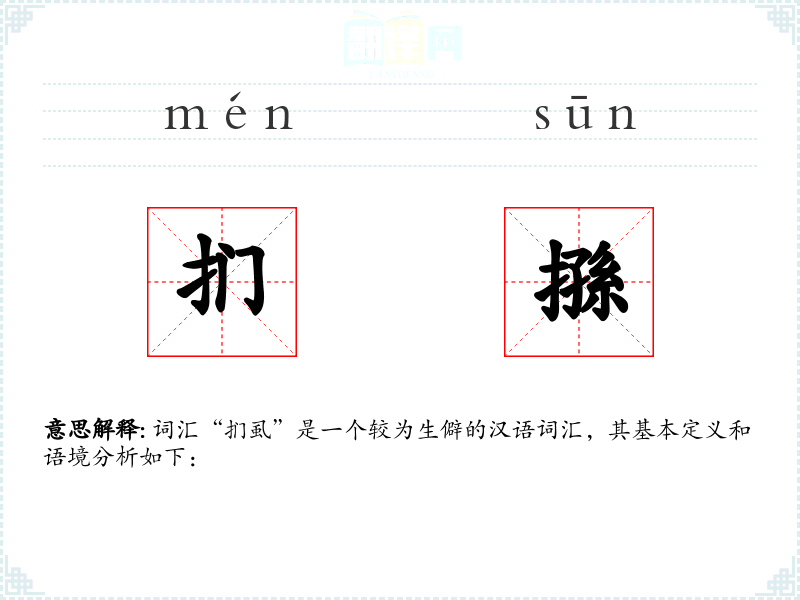 词汇“扪虱”是一个较为生僻的汉语词汇,其基本定义和语境分析如下: