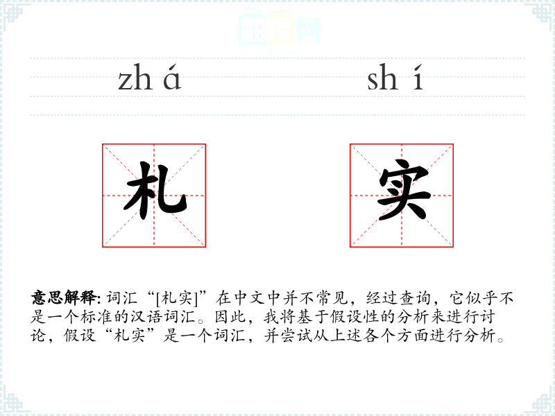 词汇“[札实]”在中文中并不常见,经过查询,它似乎不是一个标准的汉语词汇。因此,我将基于假设性的分析来进行讨论,假设“札实”是一个词汇,并尝试从上述各个方面进行分析。