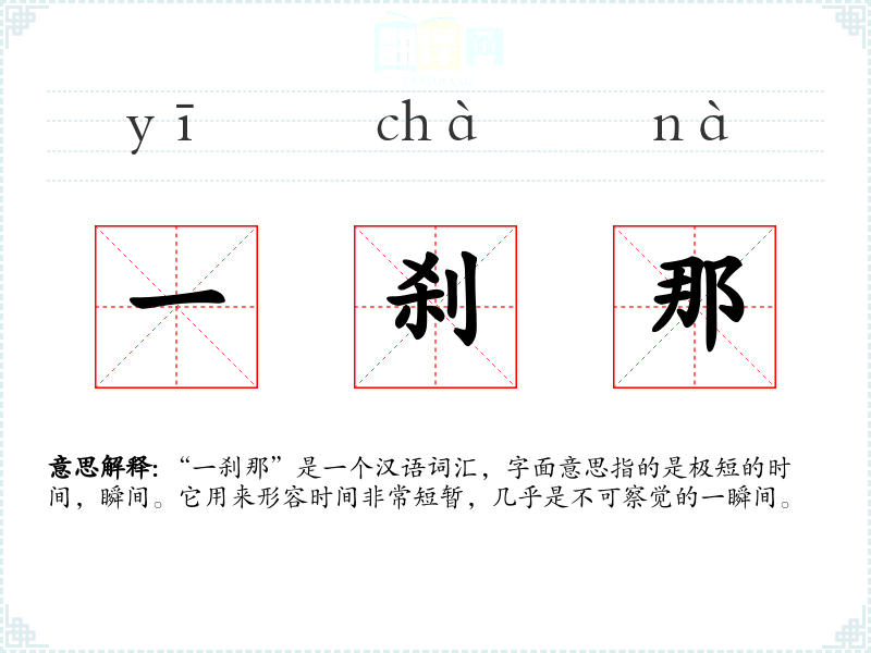 “一刹那”源自**术语,原指极短的时间单位,后来逐渐融入日常语言中,用来形容任何极短的时间。