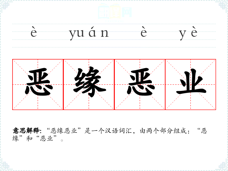 “恶缘恶业”是一个汉语词汇,由两个部分组成:“恶缘”和“恶业”。