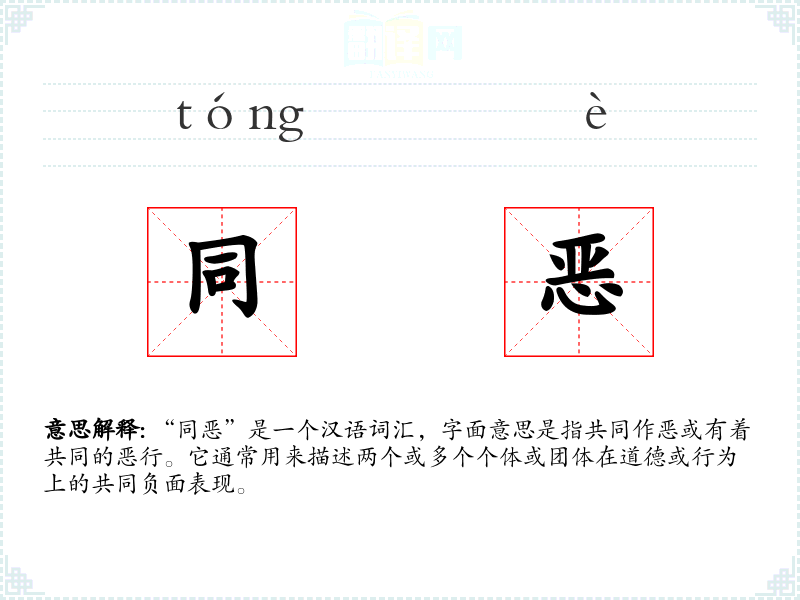 “同恶”是一个汉语词汇,字面意思是指共同作恶或有着共同的恶行。它通常用来描述两个或多个个体或团体在道德或行为上的共同负面表现。