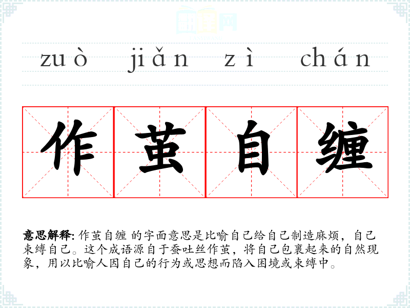 "作茧自缠"的意思解释、作茧自缠是什么意思由翻译网汉语词典查词提供。