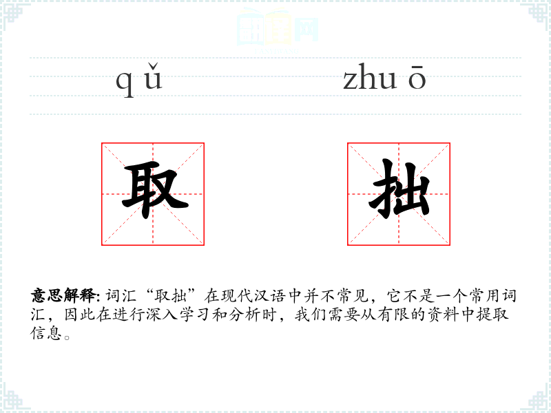 词汇“取拙”在现代汉语中并不常见,它不是一个常用词汇,因此在进行深入学*和分析时,我们需要从有限的资料中提取信息。