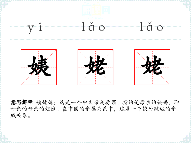 - 同义词:姨奶奶(母亲的姨妈)