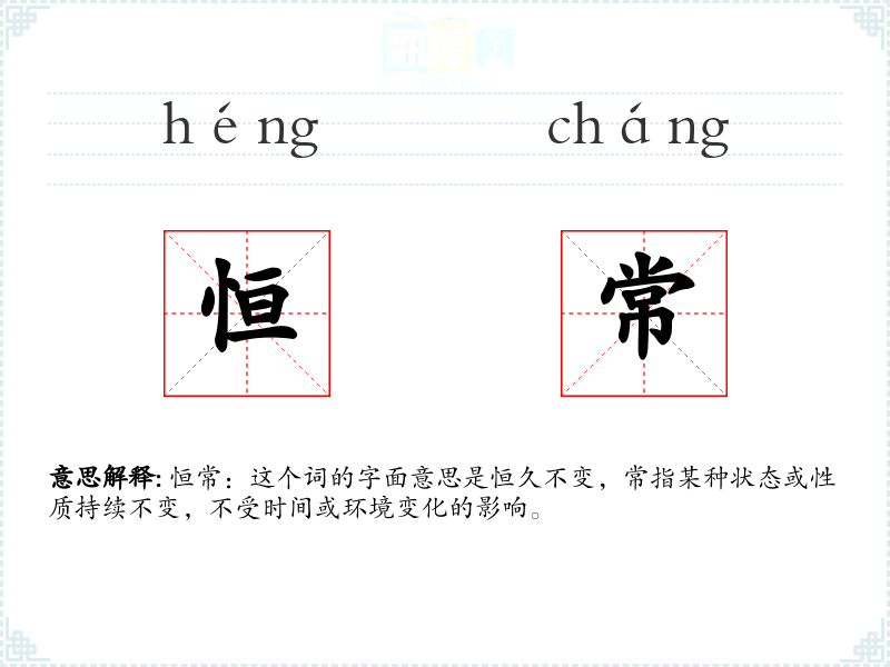 恒常:这个词的字面意思是恒久不变,常指某种状态或性质持续不变,不受时间或环境变化的影响。